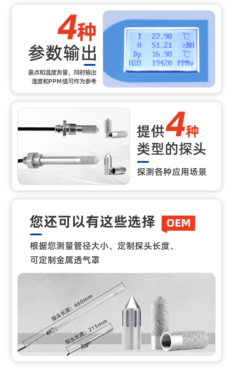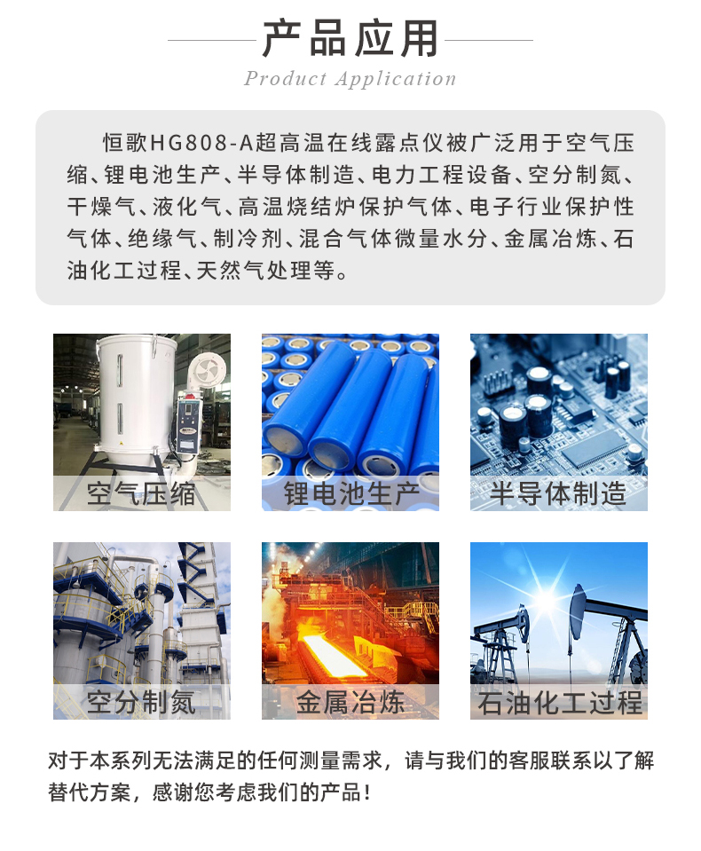 • 產品應用: 空氣壓縮、鋰電池生產、半導體制造、電力工程設備、空分制氮、干燥氣、液化氣、高溫燒結爐保護氣體、電子行業保護性氣體、絕緣氣、制冷劑、混合氣體微量水分、金屬冶煉、石油化工過程、天然氣處理等。