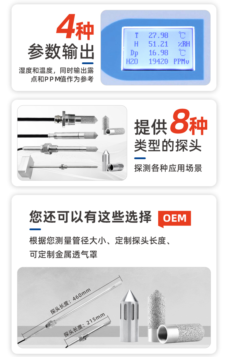 ●模擬量輸出:?溫度+濕度(露點值僅供參考)4~20mA/0-5V/0-10V(三選一)